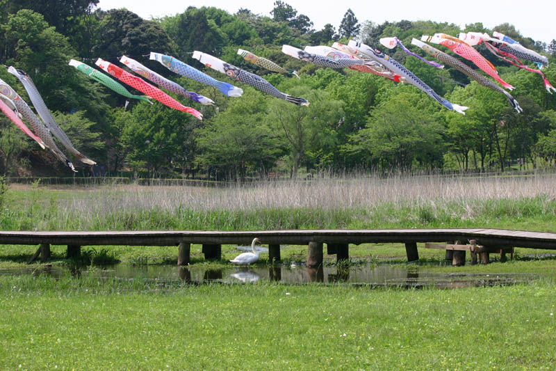 公園にはたくさんの鯉のぼりが元気に泳いでました。