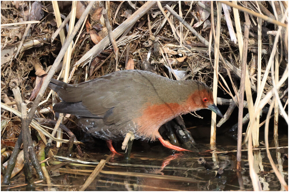 個体差はあると思いますが、クイナに比べヒクイナはやはり太めで、動作もゆっくりしているので、撮影はしやすいですね。
