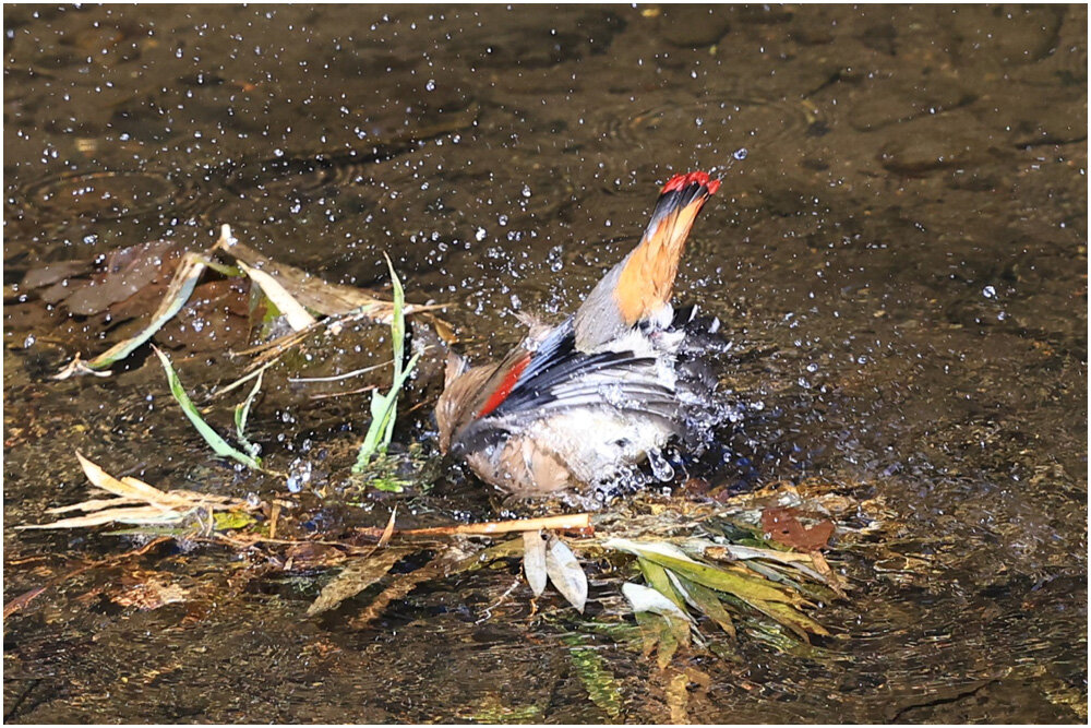 川辺のヒレンジャクさん②水飲み 2026年03月06日 20:48 何度も水を飲みに川へ下りたヒレンジャクさんです。この場所がお気に入りのようでした。水を飲み水浴びも何度もやってました。勢いよく水しぶきを上げて楽しんでるようにも見えました。終って飛び出すヒレンジャクさんパラパラと次から次と下りて来るレンジャクさん葦の中で給水をする時も有りました。 「鳥見」カテゴリの最新記事 < 前の記事次の記事 > コメント コメント一覧 (4) 1. chankochan 2026年03月06日 22:25 ヒレンジャクさんの水飲み・水浴び 楽しまれている様子が、手に取るように 分かります。 とても綺麗で素敵な様子ですね (●^o^●) 早く仙台に来て下さい 0 otome がしました 2. otome 2026年03月07日 11:54 >>1chankochan 鳥との距離も近いし,CMさんも少なかったので何度も下りて来たと思います。 近くで見ると綺麗で魅力ありますね~そちらにもこれから飛来すると思いますよ。 いつも遅かったですよね。 早く来てくれると良いですね。 0 otome がしました 3. ブリ 2026年03月10日 14:06 レンジャクさんは飛ぶと全体の羽がグレーっぽくなるのですね。 どんな風に見えるんだろうと思っていました。 開いた羽の先が白かったり、尾羽は先が赤くてきれいですね。 otomeさん、近くでたくさん飛び立つのを見られたのですか。 これだけいると、にぎやかだったのではないですか。 鳥さんはほんとに水浴びが好きですよね。 寒いときでも平気で水の中に入っていきますよね。 見ているほうが、寒い寒いと言ってしまいます^^ 0 otome がしました 4. otome 2026年03月10日 18:28 >>3 ブリさん 川辺で水飲みに下りる時、あっという間なのであまり見て無いです。 下りたレンジャクさんの場所が見えない時も有るんですよ。 陰の方に下りると、見えないし撮れないです。 日陰は暗くて綺麗に撮れなかったりですが、良い場所に下りて、ゆっくり飲んでる個体だけ撮るようにしてました。 でも、飛び上がる時もあっという間で撮れないことが多いですよ。 私は何時も手持ちなので疲れて持てなくなるときも有るんですよ。 鳥さんたちは羽虫が付かないように水浴びするので、寒くてもやってますよね。 0 otome がしました コメントフォーム 名前 コメント 記事の評価 リセット リセット 顔 星 情報を記憶 コメントを投稿する